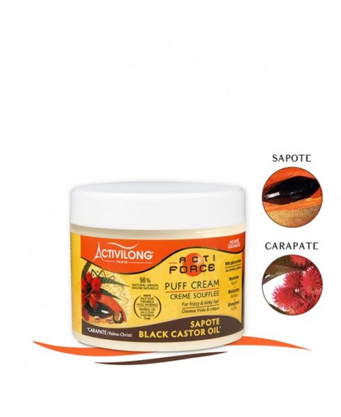 La crème soufflée de la marque Activilong-Actiforce, hydrate, nourrit et répare les cheveux secs et ternes. Formule sans rinçage, onctueuse et légère, riche en protéines végétales, huiles de carapate et sapote, redonne force et résistance, apporte douceur et vitalité aux cheveux crépus et endommagés.